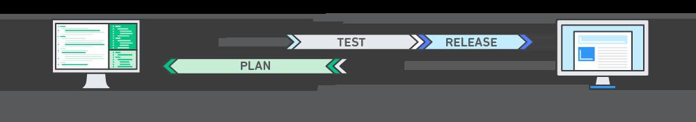 Dans un modèle DevOps, les équipes de développement et d'opérations ne sont plus isolées. Il arrive qu'elles soient fusionnées en une seule et même équipe. Les ingénieurs qui la composent travaillent alors sur tout le cycle de vie d'une application, de la création à l’exploitation, en passant par les tests et le déploiement, et développent toute une gamme de compétences liées à différentes fonctions.